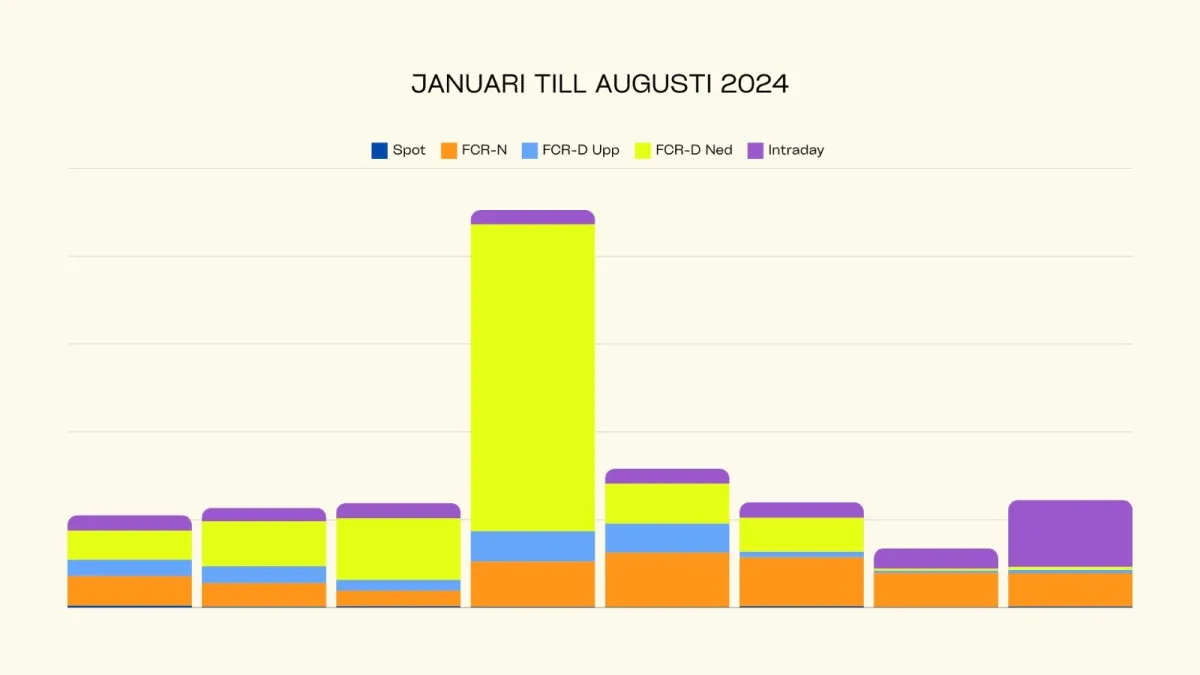 Observera att marknadspriserna kan fluktuera; denna beräkning visar på en historiskt god avkastning. Framtiden är oförutsägbar och marknadspriserna kan röra sig både uppåt och nedåt. Kompensationen skalas linjärt med systemets kapacitet. Det betyder att ett 10 kW-system genererar dubbelt så mycket intäkter som ett 5 kW-system.